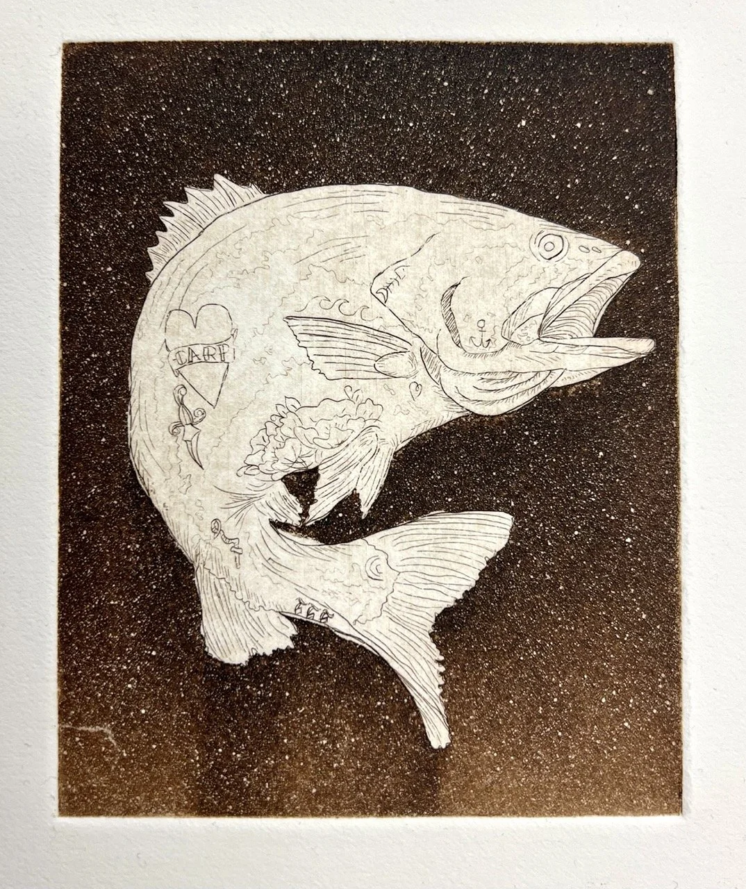 intaglio, hard ground, soft ground, aquatint, chine colle
